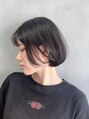 毛先ぱっつんボブの内巻きワンカールスタイルです。レイヤーを入れて顔まわりはひし形フォルムの小顔ヘアに