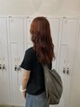 夏!なオレンジブラウン波ウェーブ巻きでパーマ風な仕上がり