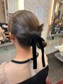 結婚式の二次会があるという事で、ヘアセットをさせていただきました。今流行りのタイトめなスタイルにヘアアレンジさせていただきました。仕上げにラメを振ってドレスにも合う綺麗なスタイルに仕上がりました。
