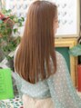 【スタイルは★ブックマーク★が便利】重めスタイルになりがちなストレートロングは、ツヤ感ブラウンベージュカラーで透明感UP。アシンメトリーに仕上げたかきあげバングでこなれ感を出して。斜めバングや厚めバングで目力強調も◎(メイク担当:北浦和店成田)