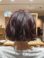 切りっぱなし/ボブ/ローズカラー/レッド/ハイライト