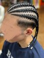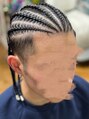 コーンロウ6本、毛先エクステ、シルバーアクセサリー
