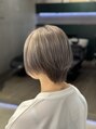 - 上尾/メンズライク ミルクティーアッシュ ハイトーンカラー 前髪パーマ ぱっつん前髪 ボブパーマ