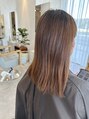 長さは鎖骨あたりのセミディボブにカラーはオレンジみを抑えた明るさキープのベージュ