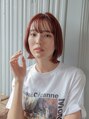 顎下ラインでカットしたボブスタイル。レイヤーを入れて丸みが出るように、内巻きにすると丸く、外はねするとくびれるカットに。カラーはレッドブラウンで柔らかさとツヤ感のあるカラーに。ベースも明るいので透明感がでます。