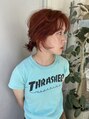ブリーチなしでつくるオレンジカラー切りっぱなしのボブスタイルに顔まわりレイヤーで結んでも可愛いです!!