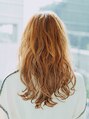 カットは後ろから丸く見えるロングスタイルで印象に軽さを出しました。カラーは赤みが無いブラウンベージュです。スタイリングは中間毛先を中心に巻くのですが、抜け感を出すため所々ストレートな部分も作っています。