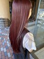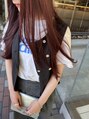 しっかり発色でツヤのある赤髪。ブリーチなしでここまで綺麗な赤髪にできます。赤だけじゃなく、オレンジやブラウンなども混ぜてカラーしています。