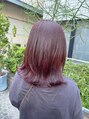元々入れていたフェイスフレイミングを生かして、チェリーブラウンカラーに染めました。ブリーチ部分は色味がハッキリ出て、全体は、落ち着いた暖色になるので派手になりすぎず個性的なカラーが楽しめます。全体的に統一感が出て可愛いです!暖色/ゼロテク