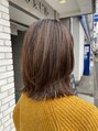 【気に入って頂いたスタイルはブックマークしてスタッフにお見せください!】ミディアム外はねスタイルにべージュカラーとハイライトでスタイルも軽やかになります!