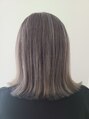 バレイヤージュです!!ブリーチでしっかりベースを抜いてから、グレイ系のお色を乗せています☆TOPの内側は、頭半分までダークカラーでトーンダウンし、表面はハイライトが入っています!!