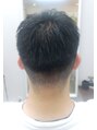 汗をかく時期にぴったり。前髪に向かってツーブロックに、さっぱりとカットしました。顔周りをすっきりさせると、パッと明るい雰囲気になりますよ。トップふんわり、ネープはキュッと引き締まったシルエットもカッコいいですね。