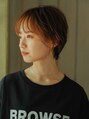 横幅をしっかりもたせたワイドバングがポイントのショートスタイルです。耳にかけたりおろしたりで雰囲気を変えることができる万能ショートスタイル!ワイドバングな分シースルーで抜け感を出して今時なスタイルに仕上げました。[五反野]