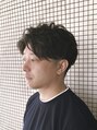 サイドと襟足を短めに刈り上げたパーマスタイルです。全体的に無造作でラフな動きを出しています。