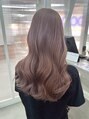 ブリーチ必須、透明感抜群、ベビーピンク〇仕上げは40ミリのコテでゆる巻き、艶髪に!