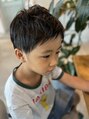 キッズカットツーブロックで耳周りはサッパリと!前髪はおろしてもあげてもいいようにカットしました!#キッズカット#ツーブロック#ジュニアカット