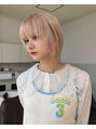 抜きっぱなしブロンドカラーに顔まわりのデザインカット