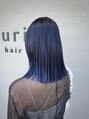鎖骨ラインの切りっぱなしスタイルに深みのあるブルーカラーです。