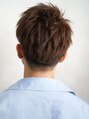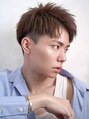 スッキリ短めのアップバング!バングは眉上、サイドは耳上、襟足は刈り上げ。ソフトツイストパーマをかけると無造作感が簡単に出せます!〔メンズヘア/渋谷/パーマ/ツイストスパイラル/アップバング/ツーブロック/刈り上げ)