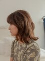 こちらのスタイルは、肩のラインでカットしたボブスタイルです。毛先に重みを残しつつ、コテで緩く巻いてあげることで抜け感のある大人っぽいスタイルとなっております。透明感のある色味にすることで、より抜け感を出すことができます【ボブ/ショートカット