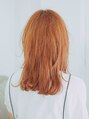 カラーは今が旬のアプリコットオレンジでツヤと柔らかさの出るミディアムスタイルです☆女の子らしいスタイルのなかにもラフで飾りすぎない印象が◎毛先と前髪をゆるふわにして動きをだし立体感をだしました。