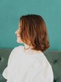 ミディアムボブヘアです。肩に少しつく長さで毛先を巻くスタイリングをすると、おしゃれな印象になります。前髪は横に流しているので、大人っぽい印象になります。下にボリュームのあるカットのためスタイリングしたときに落ち着いた印象になります。【ボブ】