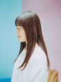 シースルーバングが印象的なストレートロングスタイル!!バングは幅広めで、切りっぱなしのカットラインで軽くします。全体の髪もボリュームが出ないように毛量を調整します。カラーはベージュ系カラーで、明るさをだします。