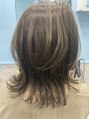 あえて肩に当たるくらいのレイヤースタイル。表面にレイヤーを入れて、ウルフ風に。カラーは赤みを抑えたカーキアッシュをオンしました!