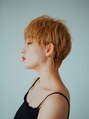 ベリーショートのハイトーンスタイル!オレンジ系の明るいカラーに襟足をバッサリと切った涼しげなヘアー。全体的に巻いてふわっとさせながらオイルやワックスなどのスタイリング剤で束感を出したウェットスタイルが夏らしくておすすめです!