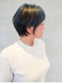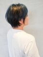 内側にエメラルドグリーン、表面に鮮やかなブルーをのせたアンブレラカラー ショートボブで形もオシャレに☆ 推し活など推しメンのカラーでライブに行く方とかオススメですっ!