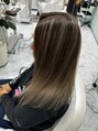 1ブリーチのバレイヤージュで毛先はブリーチ履歴を生かしてミルクティーカラーでオンカラーしました。艶良く仕上がるのでミルクティーオススメです!
