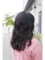 強めカールのパーマスタイルは低めのレイヤーを入れて広がりにくくしています。