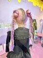ヘアセット、ツインテール、お団子ツイン、編みおろし、三つ編み、ヘアティンセル、コーンロウ、ブレイズ、ポイントブレイズ、ヘアカラー、ハイトーンカラー、原色カラー、派手髪、デザインカラー、インナーカラー、ツートンカラー、ペールカラー