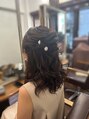 結婚式ヘアアレンジ。上品な雰囲気に合わせ、品良く華やかに。お顔立ちもおキレイなので、ルーズ過ぎずスッキリ、しかし普段はやらないカール感と洋服に合わせて細かくお客様と一緒に悩んで、カールの出方を決めました。とても素敵でした。
