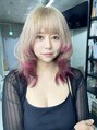 レイヤーカットで動きをつけたウルフカットにベースをブリーチ2回でできるハイトーンベージュにして、毛先にピンクと黒を入れてエンドカラーのデザインを入れたスタイル、、、