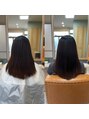 2カ月前に縮毛矯正を他店でかけ、満足のいく仕上がりにならず縮毛矯正をかけたいけど髪の毛への負担も気になり不安の多い中ご来店いただきました。最小限の負担で自分の髪じゃないみたいな艶髪に♪