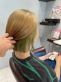 初めてブリーチさせて頂いたお客様です。イメージを変えたくて、本当は、全体的にオリーブ色にしたかったそうなのですが、グリーンが強くなりすぎて服装などに困るかも?と思い提案の元、急遽インナーカラーのグリーンに変更してくださいました。