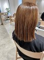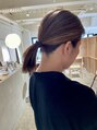 前髪も同じ長さのミディアムヘア。お顔周りと表面に細めのハイライトを入れて、1つにまとめても見えるようなデザインがポイント。毛先は揃えて内側の量をしっかり減らしてカット。伸ばし中の方だと今後飽きにくくスタイル楽しめるメニューとなってます(^-^)