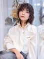 くせ毛風ふわくしゅパーマで個性的なミディアムウルフスタイルに。顔回りのレイヤーカットで小顔。フレンチカジュアルな雰囲気が大人かわいい。耳かけしたり、斜めバングや厚めバングで目力強調もOK。ダークアッシュやグレージュカラーでクールに仕上げて。