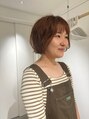 襟足ギリギリのぱつっとボブに顔まわりにレイヤーをいれたスタイル前髪は薄めのぱっつんを合わせて、パーマの残りを活かして動きをだしてます。