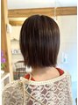 襟足ギリギリ、結べないラインの切りっぱなしボブ。縮毛矯正の履歴がある髪です。