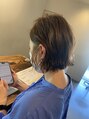 襟足ぎりぎりのボブカットにしました!髪の毛がさらさらなのでトップがぺたんとなりやすいですがストレートアイロンで動きが出るように巻いて仕上げました!