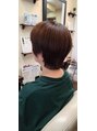 襟足長めで、秋Ver.!.セニング(梳き鋏)+スライドカットで作った、コンパクト(小頭)なボブ。