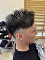 刈り上げはグラデーションになるようフェードカットにし、前髪を上げやすいようカットしてあります。全体にハイライトが入っているので立体感が出でカッコイイスタイルです