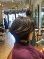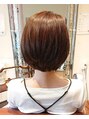 丸みのある前上がりショートボブ大人女性にピッタリな愛され大人ボブスタイルですカラーは艶感を出すためにピンクオレンジをON