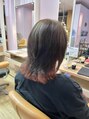 インナー部分をブリーチ1回で脱色し、グレージュで仕上げました!表面は8トーンのベージュ系で少し明るめにしています!