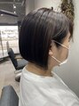気持ち前下がりボブ。水平ボブよりクールな印象がでます。