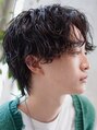 前上がりセンターパートにツイストスパイラルパーマで動きをプラスしました!襟足は刈り上げないショートスタイルで前上がり感を強くしました!