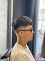 クロックスタイル。スキンフェードで前髪重め。クレイポマードでスタイリング。