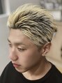 根元を残しブリーチをして立体感を出したらオールバックにセットしラウドでワイルド感あるヘアスタイルへツヤ感を出すグリースを馴染ませて流してあげてください。